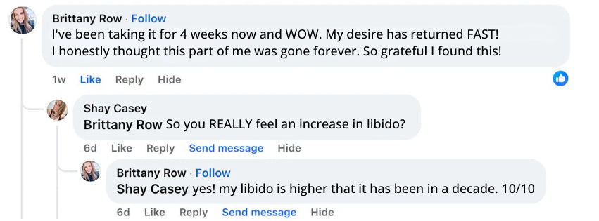"These absolutely work!! It's only been two weeks and I feel my libido coming back (lost that due to menopause). Also, vaginal dryness is completely gone… let's just say I went from the dryer to the washing machine."